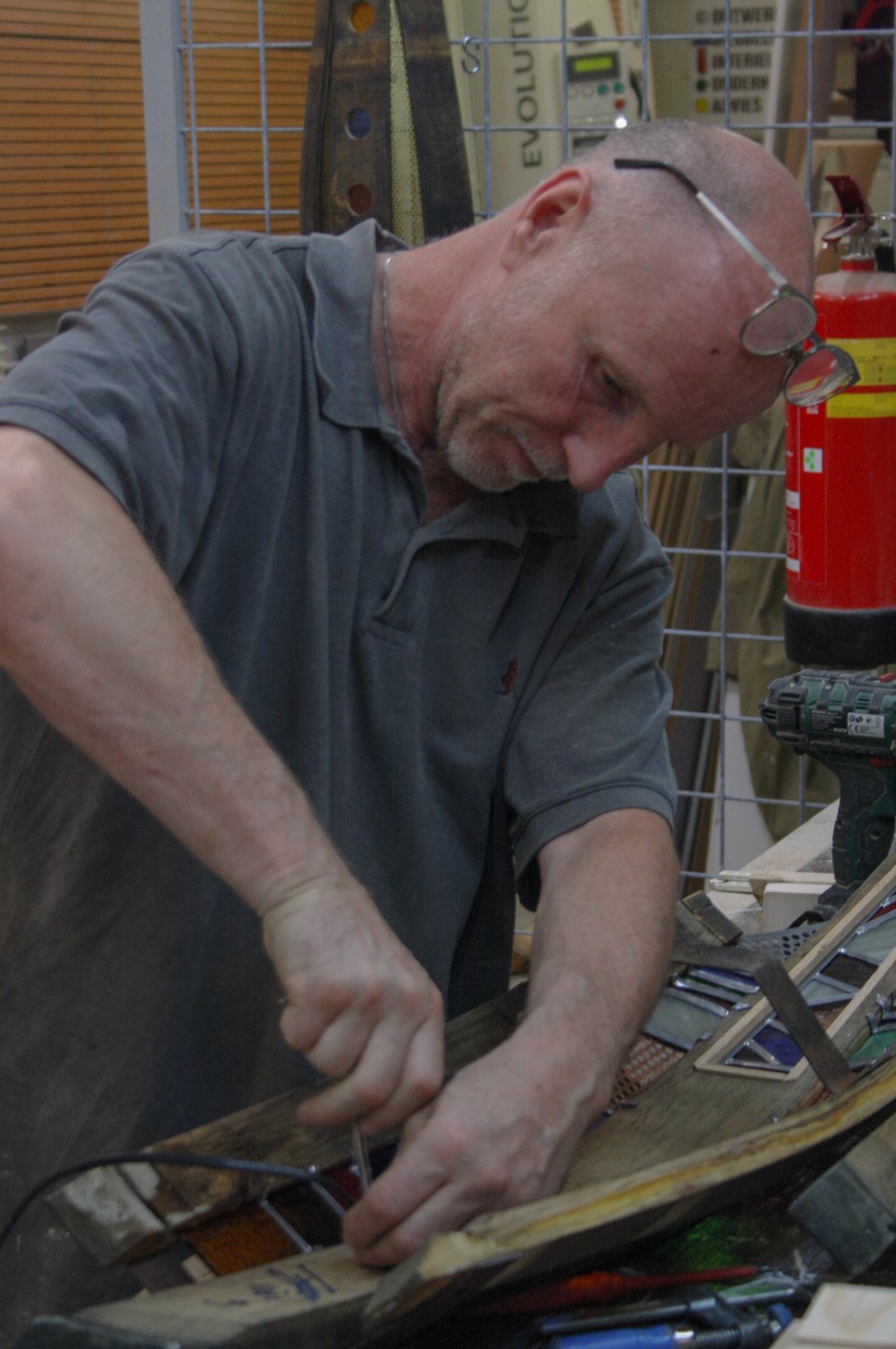 Naast de meubelmakerij maak ik lampen van oude wijnvaten of regentonnen. Deze stoere en sfeervolle lampen zijn gemaakt van duigen in combinatie met glas-in-lood. Mede door het hergebruik van de stalen banden is dit een uniek en karakteristiek design.